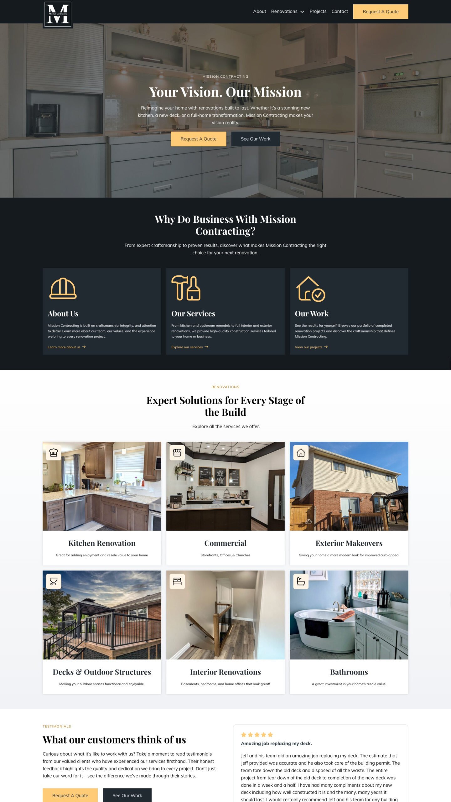 Mission Contracting is a construction company serving southwestern Ontario, specializing in renovations, decks & patios. All the while, using proceeds to help organizations working among marginalized communities in the developing world.